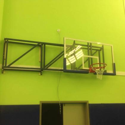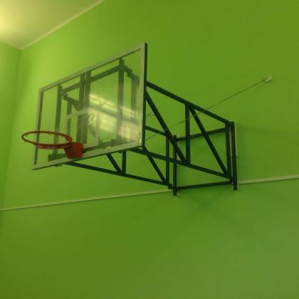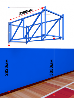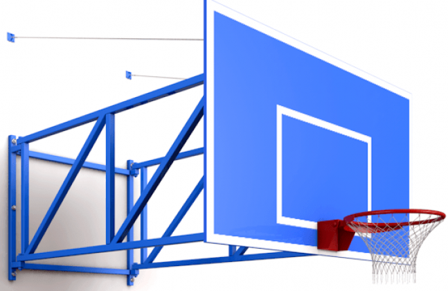Ферма баскетбольная складная предназначена для крепления в спортивных залах баскетбольных игровых и профессиональных щитов размером 1800х1050 мм. Ферма складывается к стене, позволяя освобождать пространство спортивного зала на время проведения соревнований по другим видам спорта, например по волейболу. Ферма представляет собой сборную конструкцию, состоящую из правой и левой рам, рамы основания и рамы для крепления щита. По выбору заказчика ферма может складываться как влево, так и вправо.