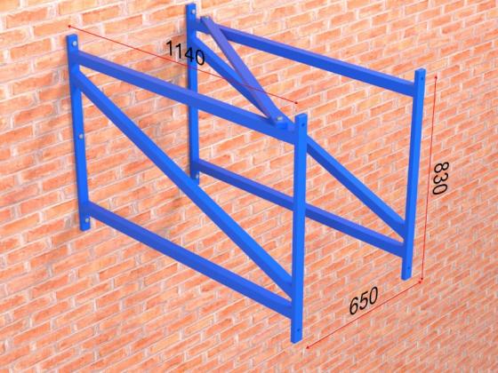Ферма баскетбольная настенная с выносом 1000, либо 1200 мм представляет из себя жесткую неизменяемую систему, предназначенную для крепления тренировочного баскетбольного щита размером 1200х900 мм, состоящую из 2-х рам. Простая сварная конструкция с надежным и простым креплением.