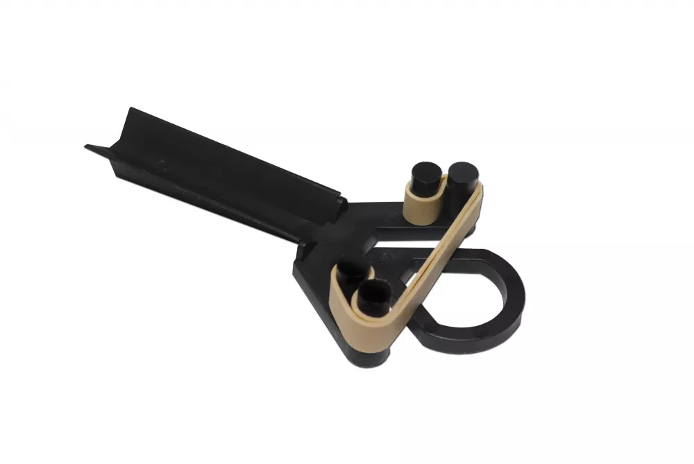 Вставьте в фиксатор шафт с присоединённой наклейкой и оставьте на срок схватывания клея. Резинка плотно прижмёт наклейку к кию, а равномерное, но не излишнее давление обеспечит её точную фиксацию.