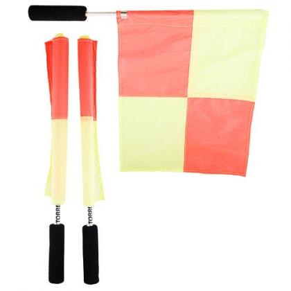 Флаги для боковых судей "TORRES", арт. SS1031. Комплект из двух оранжево-желтых флагов. Алюминиевое древко, полотно флага фиксируется стальным зажимом, неопреновая нескользящая ручка.