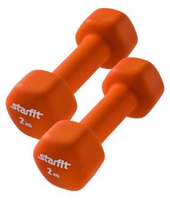 Гантель неопреновая, комплект STARFIT DB-201 2 кг, оранжевый, 2 шт