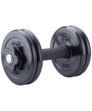 Гантель DB-712 состоит из стального грифа и обрезиненных дисков разного веса, общий вес гантели 5 кг. Резиновое покрытие повышает срок службы диска, минимизирует шум от занятий. Гантель удобно держать в руке. Нескользящая пластиковая поверхность грифа на месте хвата повышает безопасность тренировок. Широкий шаг резьбы позволяет за считанные секунды поменять вес. Гриф комплектуется пластиковыми замками, которые надежно фиксируют диски на месте.