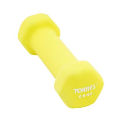 Гантель «TORRES 0,5 кг» арт.PL550105, металл в неопреновой оболочке, форма шестигранник, желтый