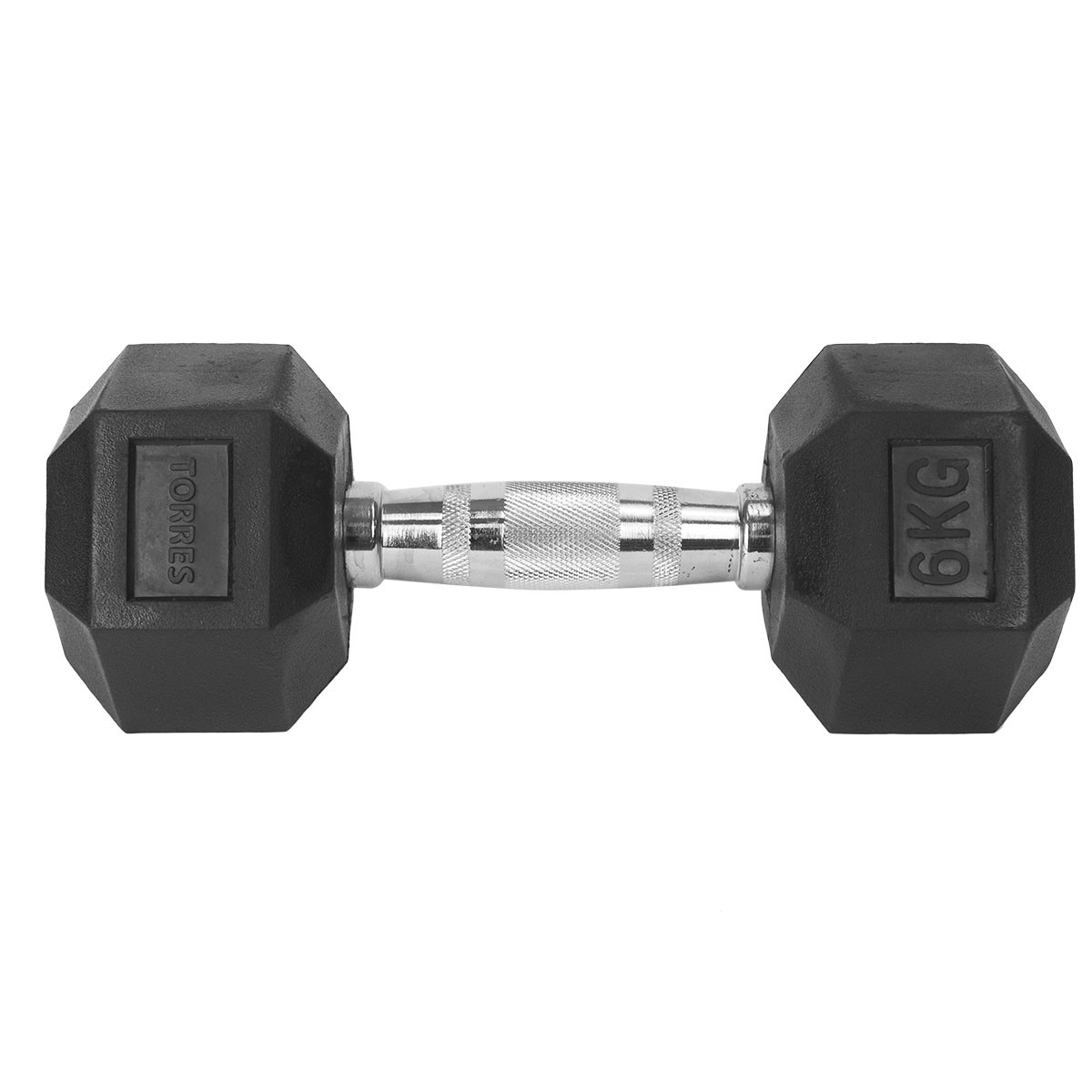 Гантель «TORRES 6 кг» арт.PL51906, металл в резиновой оболочке, форма шестигранник, черный