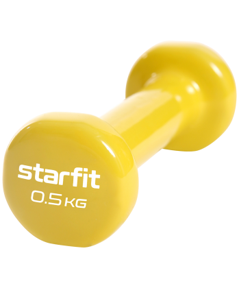 Яркая виниловая гантель 0,5 кг DB-101 от бренда STARFIT подходит для занятий дома, на улице или в зале. Чтобы вы могли сами подбирать нужные веса, данная модель продается поштучно. Гантели для фитнеса имеют специальное покрытие, которое не царапает поверхность, благодаря ему спортинвентарь также не издает много шума при случайных падениях. Такие гантели будут комфортны в использовании в любое время года! В жаркую погоду поверхность DB-101 не нагреется до обжигающих температур, а зимой ладони не будут мерзнуть. Каждая гантель имеет специальную угловатую форму, которая не позволяет изделию перекатываться, что делает снаряд более удобным как для эксплуатации, так и для хранения. Небольшой вес гантели позволяет пользоваться изделием мужчинам, женщинам и детям.