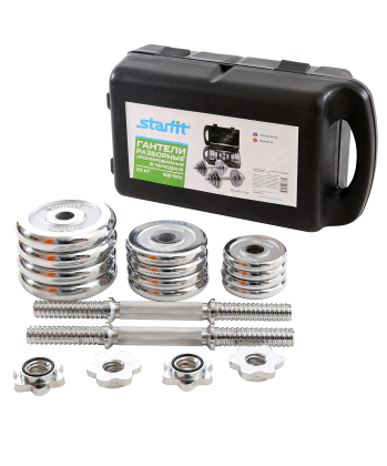 Набор из двух гантелей в компактном пластиковом чемодане, который удобно хранить и брать с собой на тренировку. Гантели выполнены из хромированной стали.
