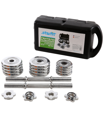 Набор гантель BB-501 от STARFIT – экспертный спортинвентарь в компактном пластиковом кейсе, который удобно хранить и брать с собой на тренировку. Гантели сборные в чемодане не только помогут привести себя в форму, этот спортивный инвентарь для фитнеса дома или в зале станет отличным подарком любому спортсмену, предпочитающему высокое качество и надежность. Гантели разборные выполнены из хромированной стали, такие гантели в кейсе прослужат долго, а легкая смена дисков позволит быстро подобрать оптимальный для себя вес. Гантели набор из двух штук помогут зеркально проработать мышцы, а компактное хранение облегчит транспортировку на дачу или соревнования. Гантели 7,5 кг удобны в использовании: гантели наборные имеют гриф с насечками, обеспечивающий большее сцепление с ладонями.