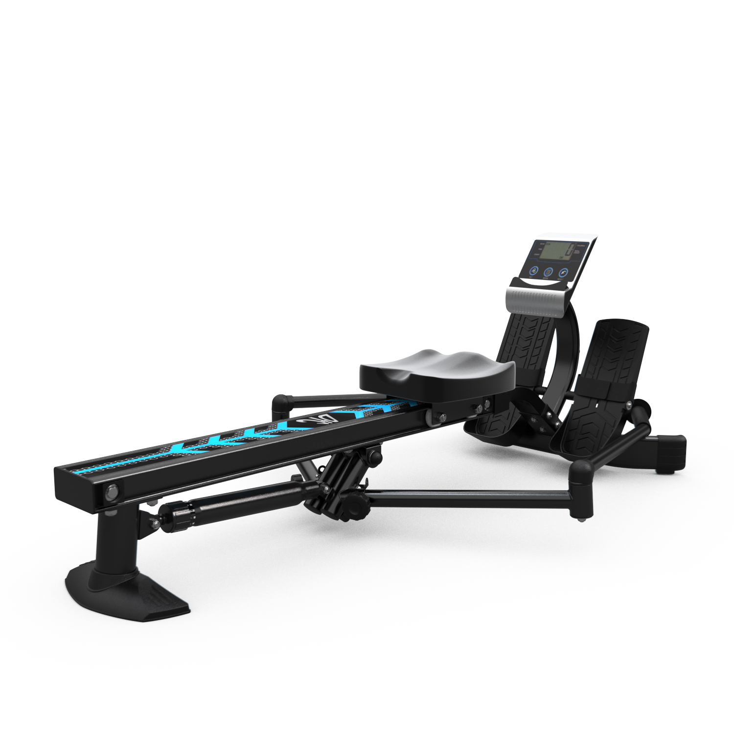 Гребной тренажер DFC R125N — это простая, но очень эффективная модель, идеально подходящая для начинающих и продвинутых спортсменов. Гребля — это комплексное упражнение, которое одновременно тренирует все основные группы мышц тела и укрепляет сердечно-сосудистую систему. Нагрузка создается при помощи одного гидравлического цилиндра, регулируемого колесиком в верхней части цилиндра, что позволяет выбрать один из 12 уровней сопротивления — рекомендуется начинать с минимального. Консоль оснащена монохромным дисплеем размером 8 х 4 см, который работает от двух батареек типа ААА (не входят в комплект) и отображает параметры: время, общее количество гребков, количество гребков за тренировку и калории. В конструкции предусмотрена подставка для планшета, что делает тренировки более комфортными и приятными. Гребной тренажер складной, что позволяет экономить место при хранении. Эргономичное сиденье размером 32 х 26 см, толщиной 4,7 см, и регулируемые ремешки на педалях обеспечивают комфорт и безопасность. Размер педалей — 32,5 х 13,4 см, а высота от пола до нижней части тренажера — 7,6 см. Рукоятки имеют диапазон вращения 360°, что позволяет настроить тренажер под индивидуальные потребности.