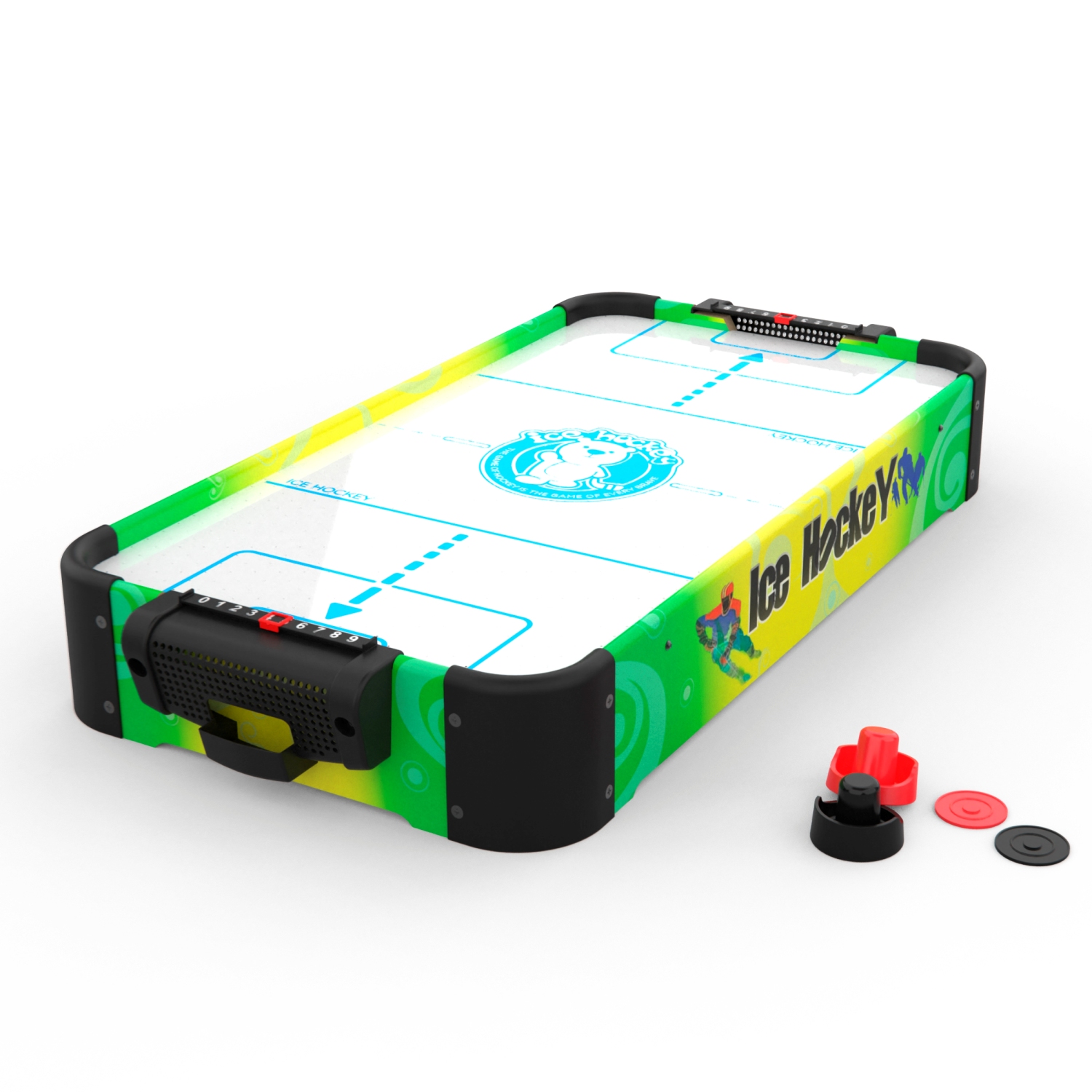Игровой стол-аэрохоккей DFC SB-AT-3003 — это яркое и динамичное развлечение, которое отлично подойдет для домашних игр, дружеских вечеринок и семейных посиделок. Размер стола — 68 х 36,5 х 9,5 см, игровое поле — 67 х 36 см, выполнено из МДФ толщиной 14 мм и покрыто ПВХ, что обеспечивает прочность и долговечность. Стол отличается от модели SB-AT-3001 увеличенными размерами, что создает более просторную и комфортную игровую зону. В комплект входят 2 биты диаметром 50 мм, 2 шайбы диаметром 40 мм и 2 механических счётчика очков. Вентилятор работает от 3 батареек типа АА (не входят). Высота бортиков — 1 см, диаметр игровых элементов — 5 см (биты) и 4 см (шайбы). Размеры в рабочем виде — 68 х 36,5 х 9,5 см, в упаковке — 69 х 37 х 9 см, вес — 2,6 кг (нетто), 3 кг (брутто). Производство — Китай.