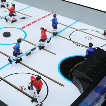 Настольный хоккей DFC JUNIOR 33" — это компактная и яркая модель, которая отлично подойдет для семейных игр дома, на даче или в отпуске. Размер стола — 82,5 х 59 х 21 см, что делает его удобным для перевозки и хранения. Корпус выполнен из специально обработанного МДФ, покрытого прочным ламинированным ПВХ, что обеспечивает долговечность и устойчивость к износу. На противоположных сторонах расположены механические счетчики для подсчета забитых шайб, что делает игру более соревновательной. В комплект входит 5 полных игроков и 1 вратарь, которые уже закреплены на штангах. Стол продается в собранном виде, остается только закрепить игроков и можно сразу играть. Благодаря компактным габаритам, его легко взять с собой в поездку или на природу.