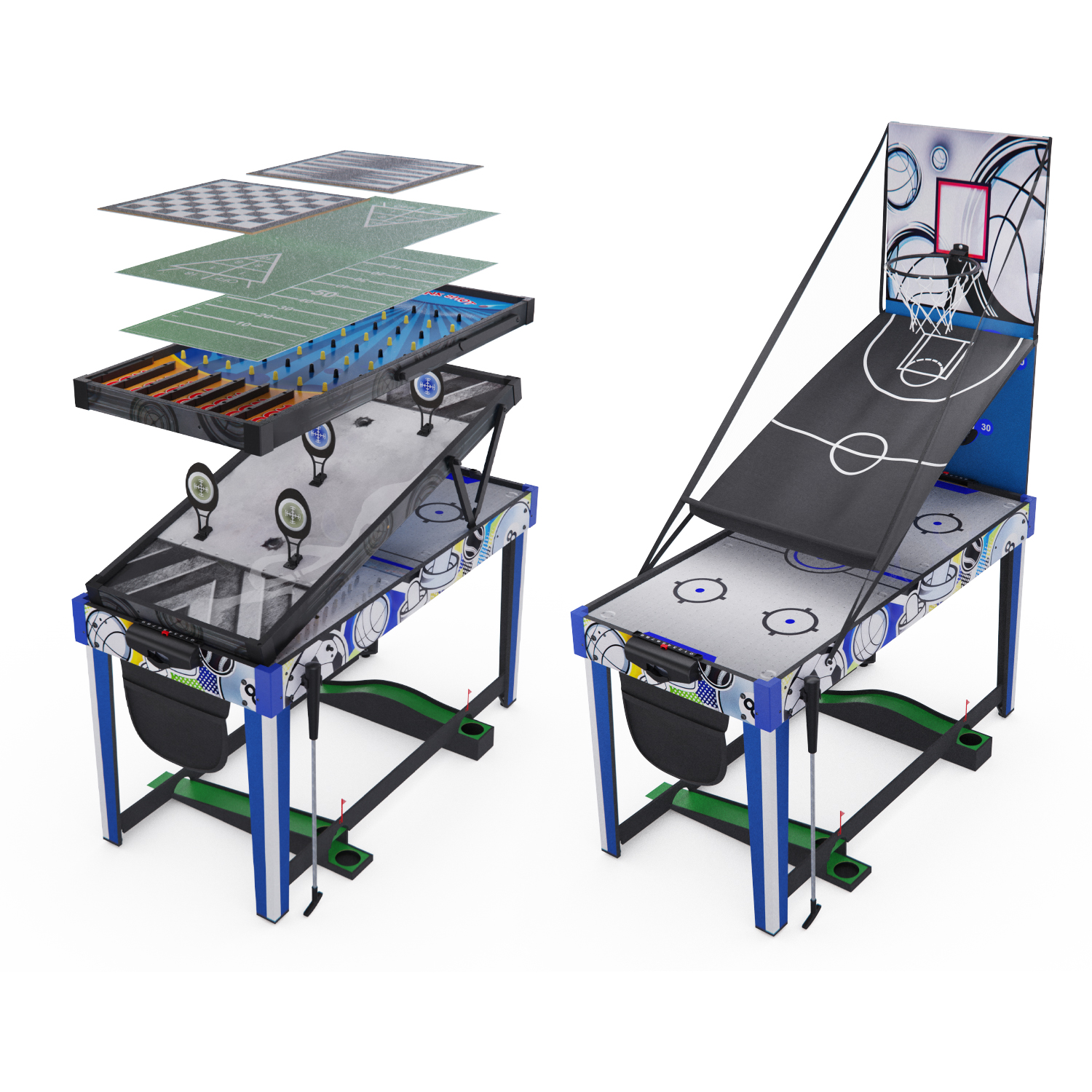 Игровой стол-трансформер DFC Pyrite 48" 13 в 1 — это универсальный домашний развлекательный центр, который превращается в 13 различных игр. Он идеально подойдет для активного отдыха всей семьи и компании друзей. В комплект входит вентилятор, питающийся от сети 220 В, который обеспечивает плавное скольжение шайбы по игровому полю для аэрохоккея.