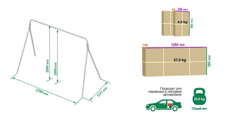 Занимаемая площадь: 2,74 х 1,27м;