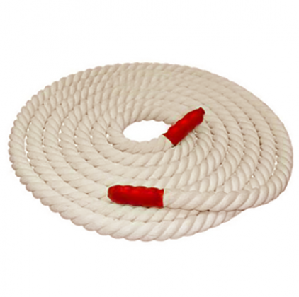 Канат для перетягивания из хлопчатобумажных волокон. Экологичный, легкий и мягкий. Диаметр 32, либо 40 мм. На концах каната закреплены чехлы из термоусадочной пленки.