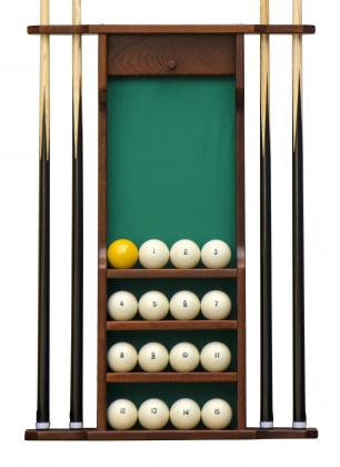 Настенная киевница на четыре кия с полкой для шаров.
