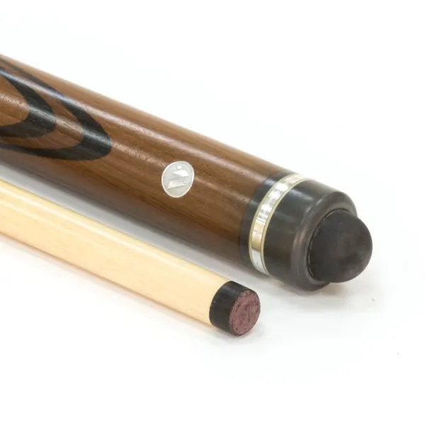 Двухсоставной кий ручной работы из наиболее крепкой древесины, которая есть в России. Он произведен целиком из граба. Причем большая часть из древесины, прошедшей термообработку в вакуумной камере. Это так называемый термограб. Его плотность 1100 кг/м³ против 800 кг/м³ у граба без обработки.