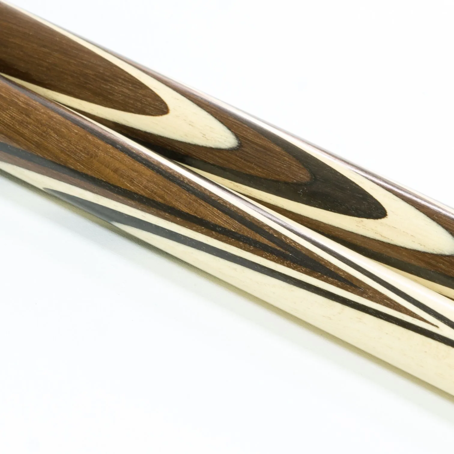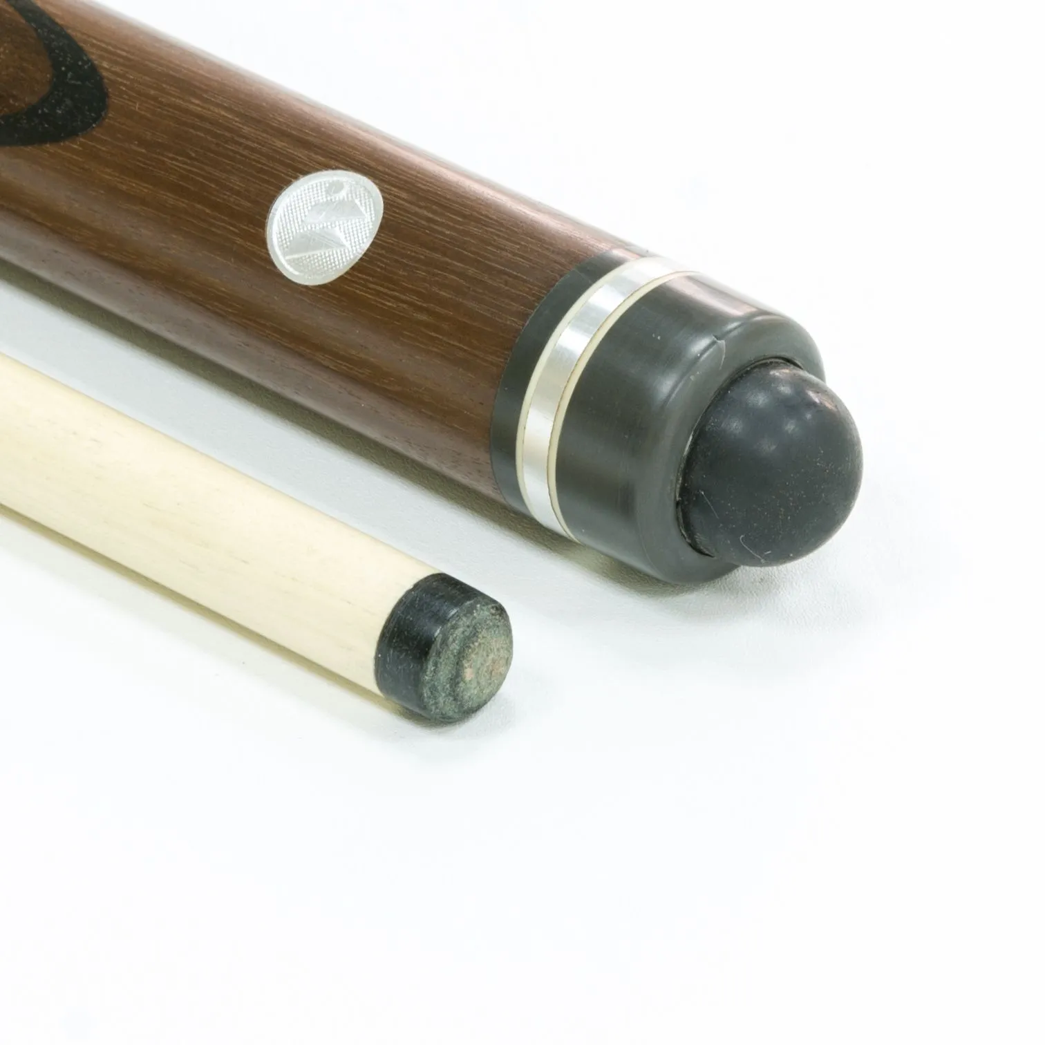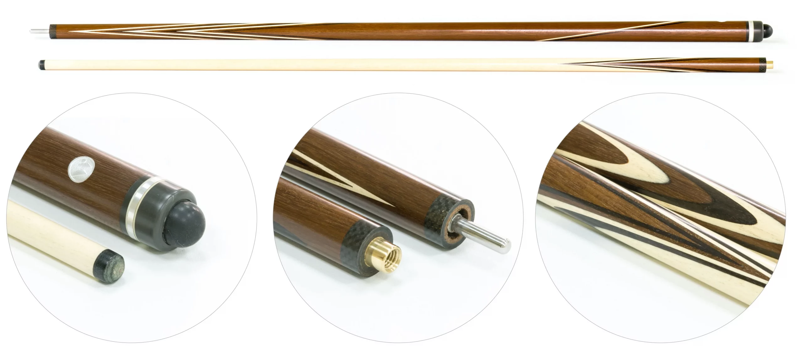 Составной кий ручной работы, выполненный из наиболее прочной древесины, добываемой в России. Это граб двух видов: кавказский и восточный. Второй после заготовки пропитывается сложным составом и приобретает вид как у эбенового дерева. Его цвет становится непроницаемо-черный без какого-либо отлива.