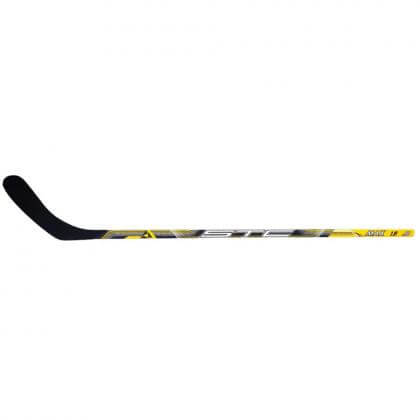 Хоккейная клюшка юниорская цельная/гибридная для игроков 7-14 лет. Древко изготовлено из нескольких слоев лиственных пород и осины, склееных и спресованных между собой, что делает клюшку очень прочной и относительно мягкой, ламинированное пластиком с 2-ух сторонней печатью. Крюк - пластик АБС армированный (композитом) стекловолокном пропитанного эпоксидным связующим материалом, окрашенный в черный матовый цвет.