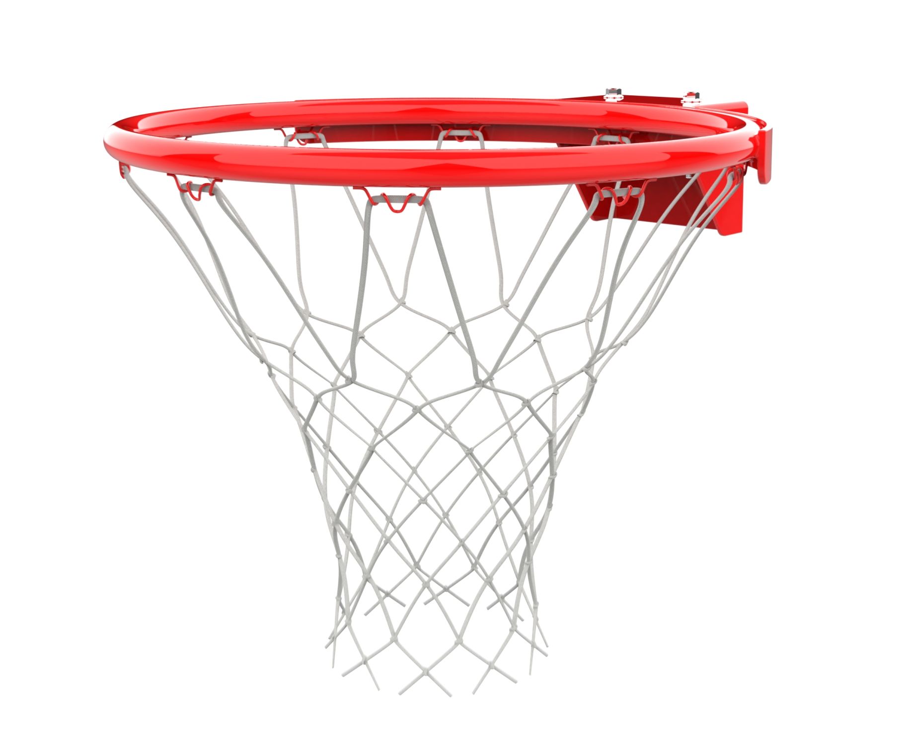 Кольцо оснащено двумя пружинами для амортизации, что делает игру более комфортной и безопасной, особенно при мощных данках и бросках. В комплект входит всепогодная нейлоновая сетка, которая крепится на 12 крючков. Расстояние между отверстиями для креплений — 100 х 68 мм, что подходит для большинства стандартных щитов.