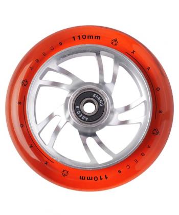 Колесо для трюкового самоката с алюминиевым диском и подшипниками ABEC-9. Характеристики: Диаметр, мм: 110 Материал: полиуретан, алюминий Жесткость: 88А Подшипники: ABEC-9