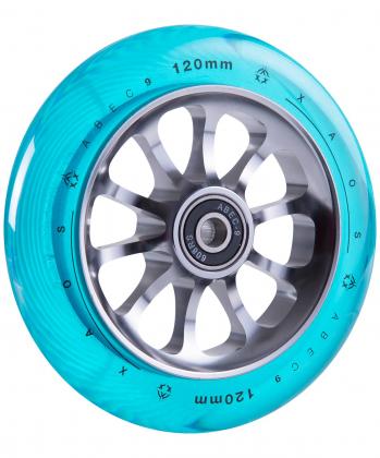 Колесо для трюкового самоката с алюминиевым диском и подшипниками ABEC-9. Характеристики: Диаметр, мм: 120 Материал: полиуретан, алюминий Жесткость: 88А Подшипники: ABEC-9