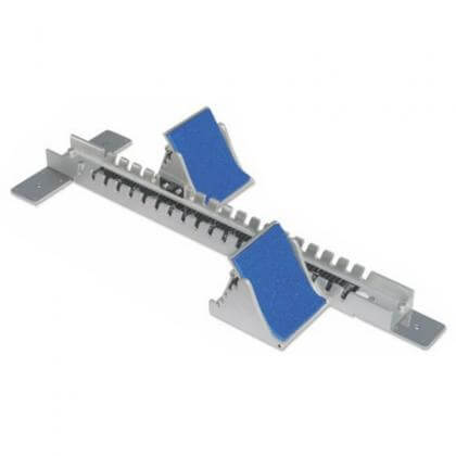 Конструкция стартового блока снизу имеет щипы для сцепления с поверхностью беговых дорожек. Обеспечивают отличную опору для отталкивания бегуна на старте. Колодки легко фиксируются в любом положении.