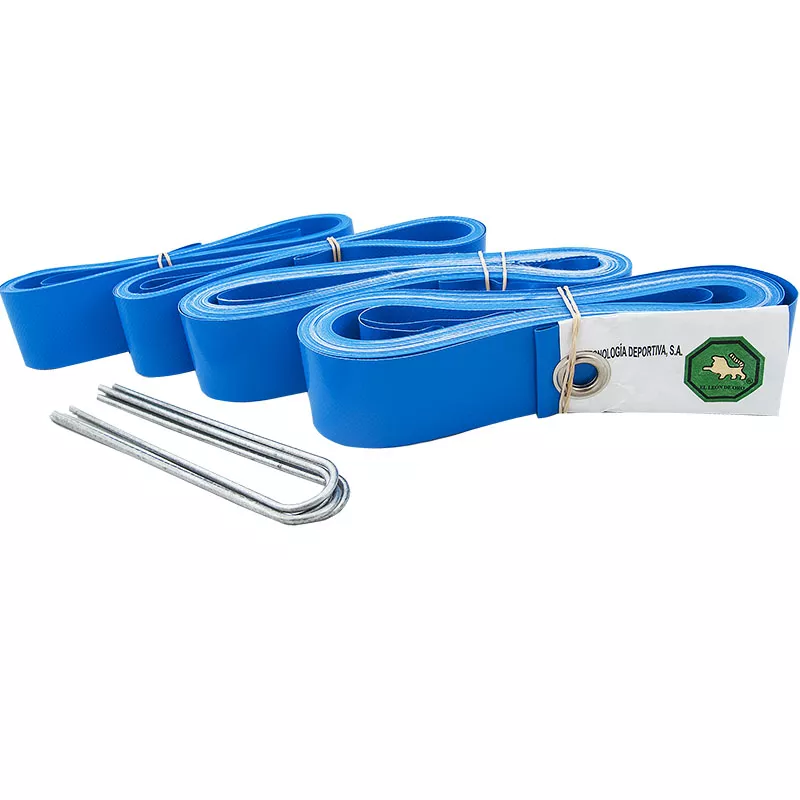 - 4 металлических штыря для соединения лент через люверсы и углубления в поверхность игровой площадки для натяжения разметки.