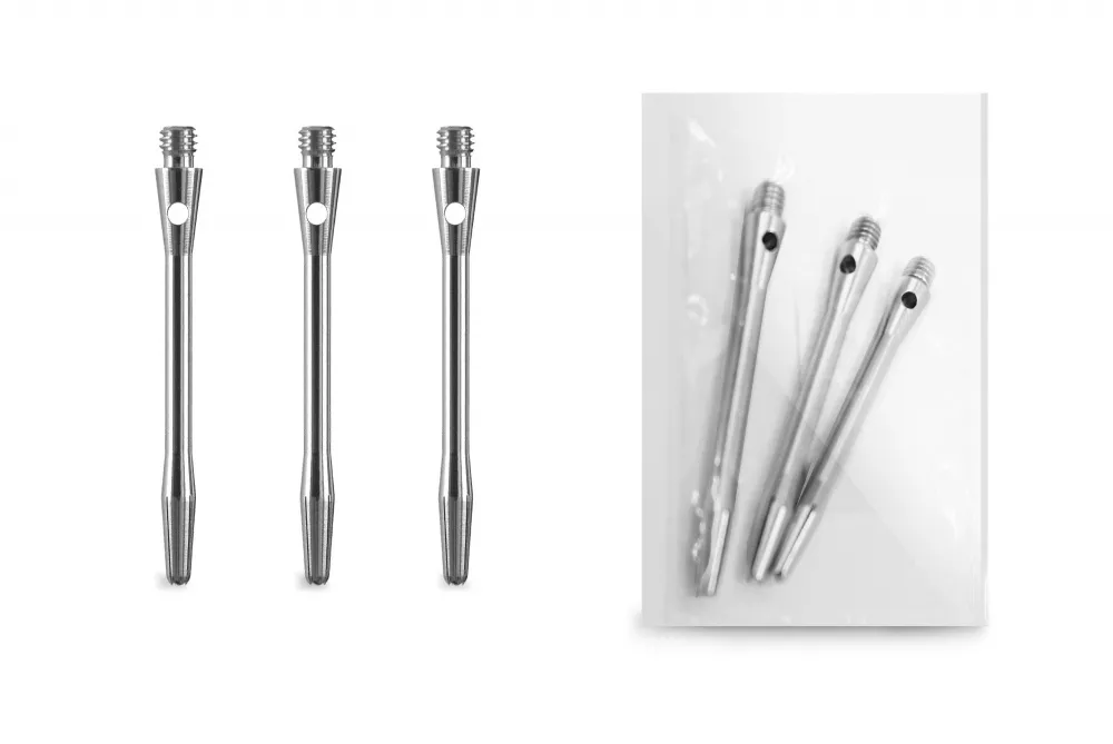 Набор алюминиевых хвостовиков подходит для среднего уровня игры. Комплект включает в себя три хвостовика, изготовленных из алюминия серебристого цвета. Хвостовики из алюминия очень надежны и не ломаются при столкновении дротиков. Каждый хвостовик универсален, имеет стандартную резьбу и длину 53 мм.