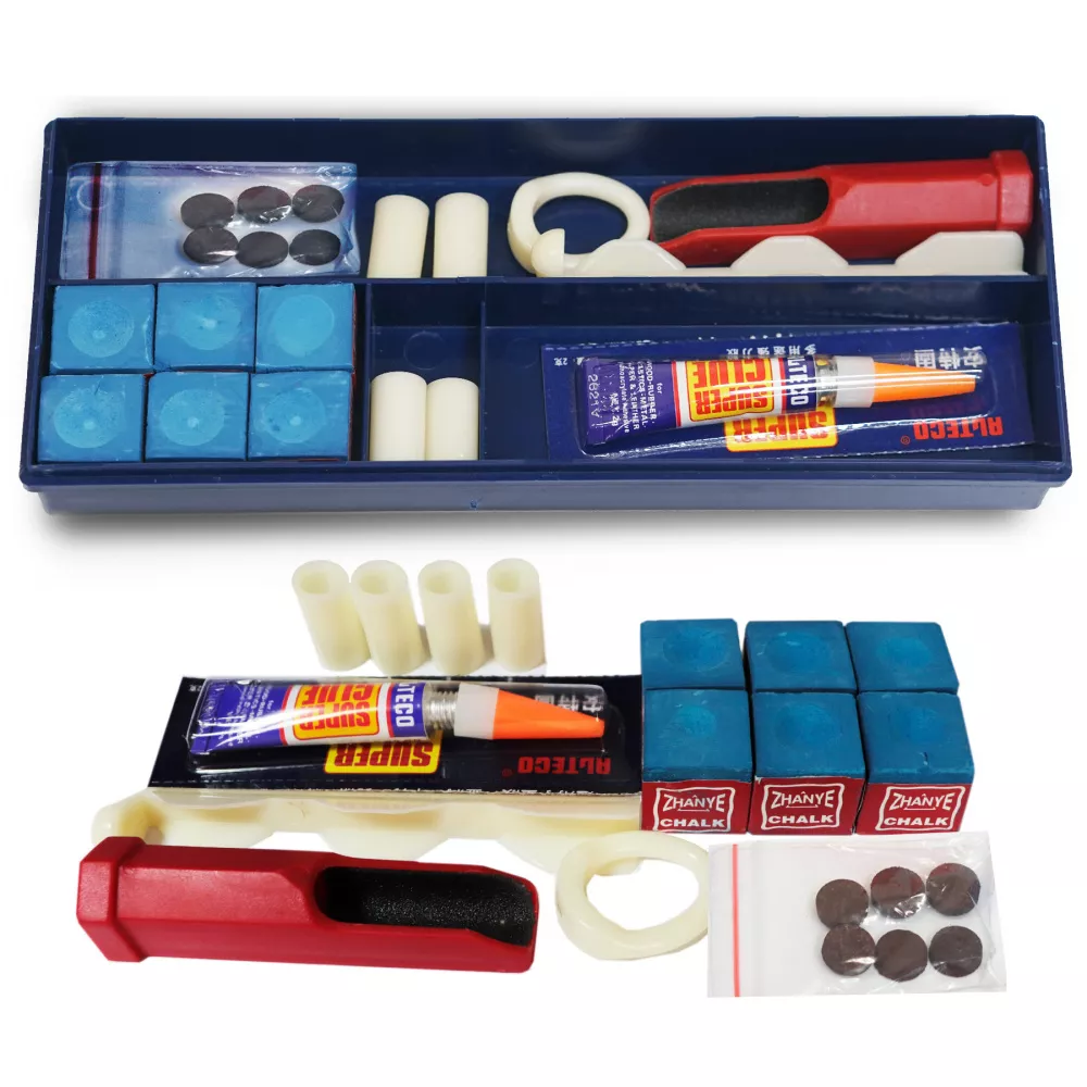 В данном наборе инструментов вы найдете все необходимое для установки наклейки на кий и поддержании ее в хорошем состоянии.