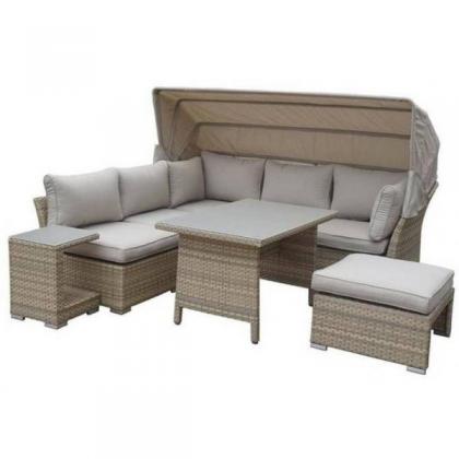В составе комплекта: Диван с тентом, три модуля, маленький столик и обеденный стол . Высококачественная лоза из полиротанга стойкая к любым атмосферным явлениям. Крепкий стальной каркас с полимерным антивандальным покрытием и отличным качеством сварки. Изделие сплетено вручную нашими мастерами под жестким контролем качества на каждом этапе производства. Лоза максимально приближена по рельефу и текстуре к естественному материалу. Идеально подходит для использования на улице и внутри помещения в любую погоду. Не боится воды, солнца и минусовой температуры.