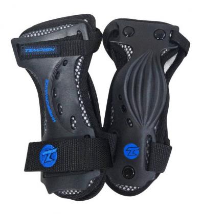 ладонь с запястьем хорошо вентилируются, поскольку текстильные и пенопластовые части протектора касаются ладоней и запястий только под пластиковыми ребрами;