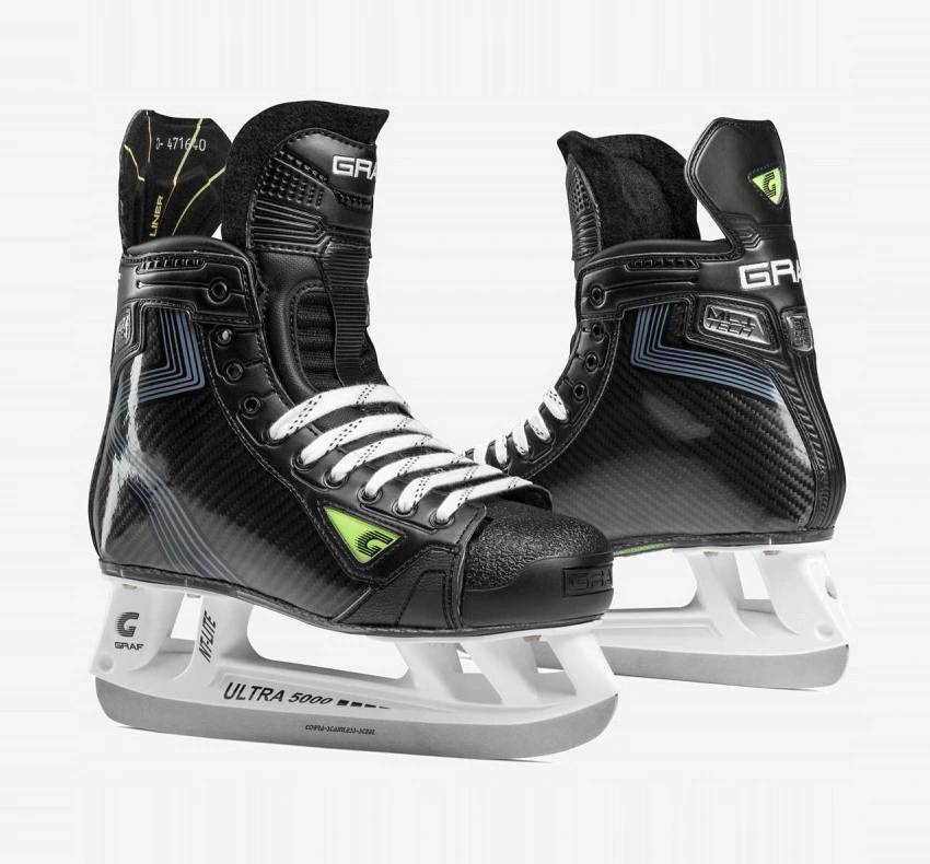- Боковины коньков выполнены из усиленного и при этом ультралегкого углеродного композитного материала (MCI карбона), который дарит оптимальную жесткость спортивной обуви и надежную защиту для ног от ударов шайбой. Данный материал является термоформуемым, поэтому в совокупности с 3D-набивкой из MicroFiber обеспечивает анатомически правильную посадку и фиксацию ноги.