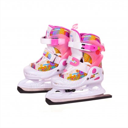 Раздвижная конструкция ледовых коньков пользуется огромной популярностью за счет того, что отпадает необходимость ежегодно покупать новую пару вслед за ростом ноги - ребенок может кататься на своих любимых коньках не один год. Размерные сетки таких моделей позволяют приобретать эти коньки и взрослым. Материал ботинка: нейлон, армированный каркасом из жесткого полиуретана Материал подкладки: синтетическая ткань Рама: интегрированная, материал – полиуретан Лезвие: тип – фигурное, материал – нержавеющая сталь Защитное напыление: есть