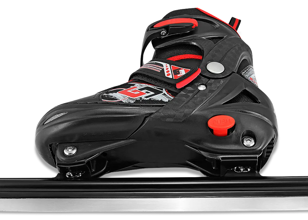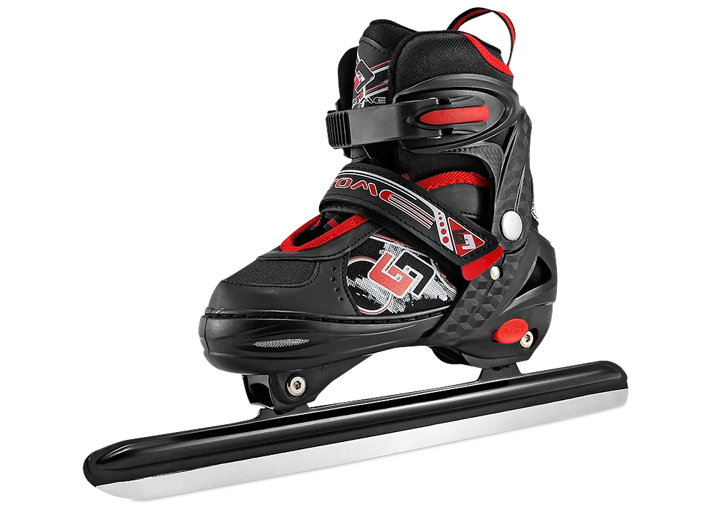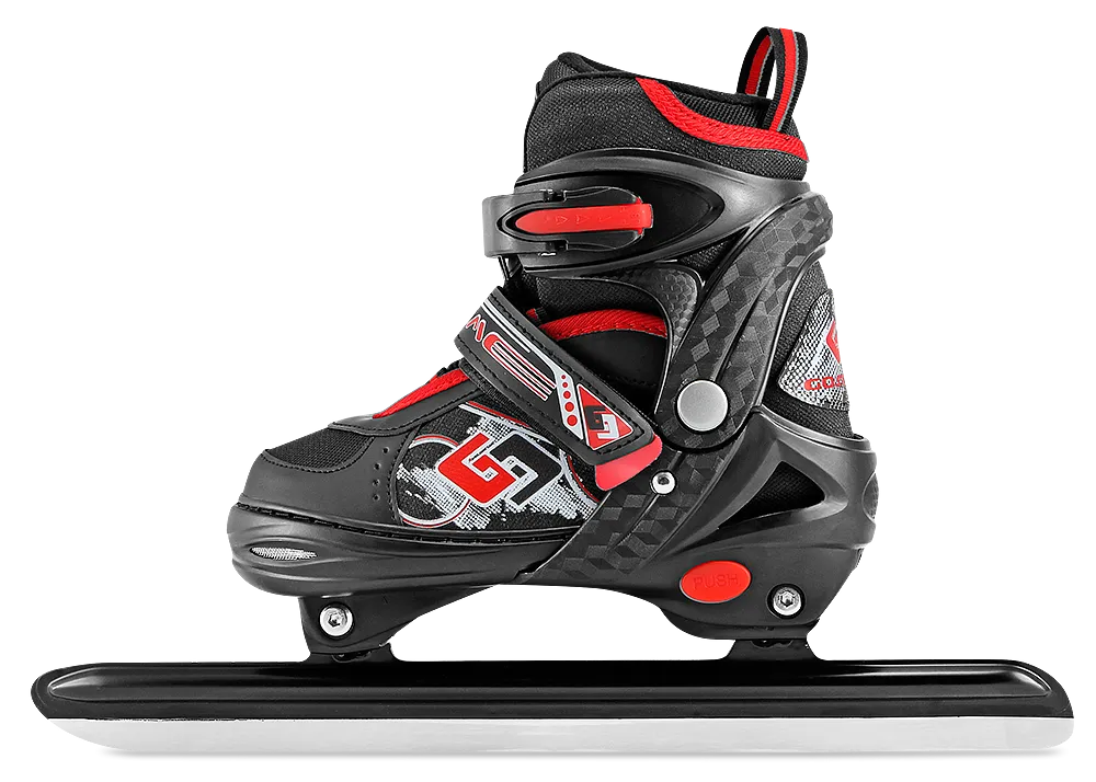 Детские коньки с регулируемым размером. Легкие и удобные. Специальная липучка на передней части обеспечивает дополнительную поддержку. Материал сапога защищает от холода.