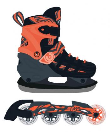 Раздвижные коньки-ролики Hot от бренда RIDEX созданы для тех, кто любит кататься как по летним городским улицам, так и по гладкому льду парков и катков. Ролики обладают шустрыми подшипниками ABEC-7, обеспечивающими отличный накат. За безопасность отвечают прочная алюминиевая рама и ударостойкий пластик. Ботинок мягко садится на ногу, его можно отрегулировать в пределах четырех размеров. А система креплений удобно фиксирует ногу, что способствует комфортному катанию. Лезвие для коньков создано из нержавеющей стали, легко затачивается и имеет продолжительный срок службы. Выбирайте роликовые коньки-трансформеры и катайтесь с ветерком без оглядки на сезон!