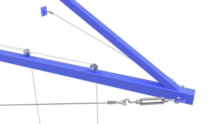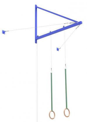 Консоль для колец состоит из жесткой металлической конструкции с креплениями для колец и двух растяжек.