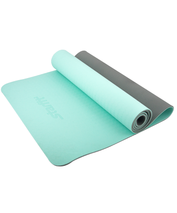 Коврик для йоги FM-201, TPE, 173x61x0,6 см, мятный/серый
