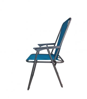 Удобное кресло для загородного отдыха придется по вкусу всей семье. Изготовлен из прочной стали и способен выдерживать нагрузку до 120кг. Высокая спинка и подлокотники обеспечивают дополнительный комфорт.