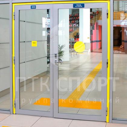 Предупреждающий круг для слабовидящих для контрастной маркировки прозрачных дверных проемов.