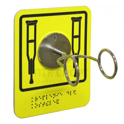 Универсальный травмобезопасный держатель предназначен для крепления одновременно 2-х костылей и одежды.Рекомендован к применению ВОС, гос. программой "Доступная среда".
