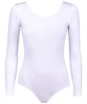 Гимнастический купальник не сковывает движений и дарит комфорт. Модель с округлым вырезом и длинным рукавом. Купальник выполнен из качественного износостойкого полиэстера, не теряет форму после стирки. Идеально подходит для занятий художественной гимнастикой или танцами, приятен к телу. Соответствует требованиям качества, предъявляемым к пошиву детской одежды. Цвет: белый.