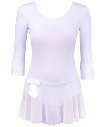 Купальник гимнастический AA-181, рукав 3/4, юбка сетка, хлопок, белый (36-42)