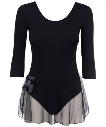 Купальник гимнастический AA-181, рукав 3/4, юбка сетка, хлопок, черный (36-42)