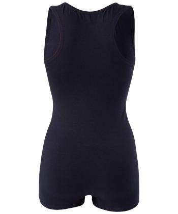 Купальник со спинкой в виде борцовки и низким вырезом ноги, имитирующим короткие шорты. Плоские швы препятствуют натиранию. Выполнен из плотного эластичного хлопка.