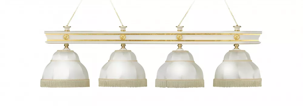 Лампа Моцарт 4пл. ясень (Blanco plumon,бархат зеленый,бахрома желтая,фурнитура золото)