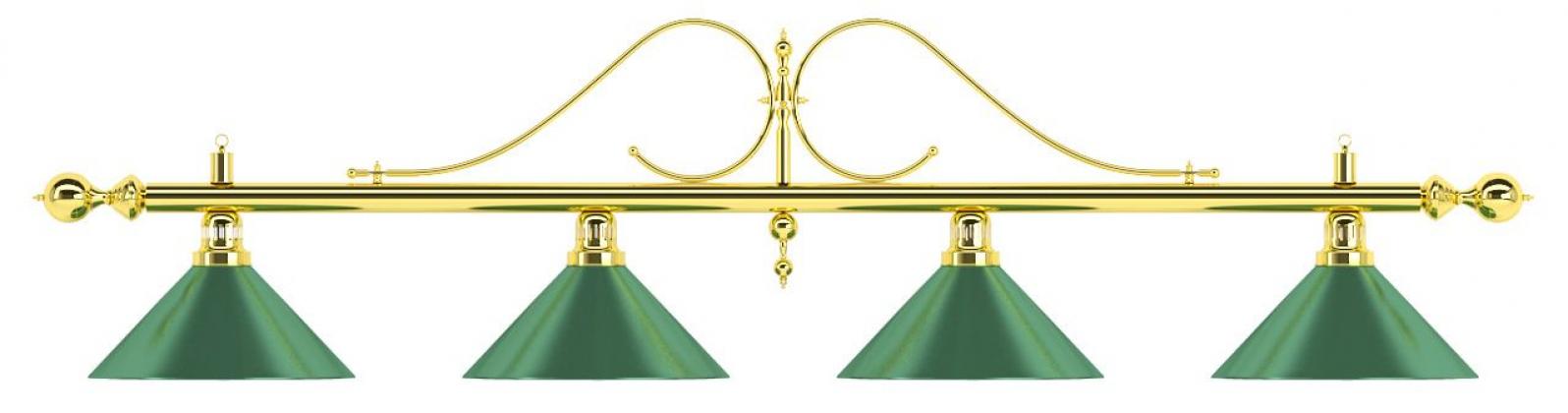Изящная лампа классического дизайна органично впишется в любой интерьер. Устойчивые к механическим повреждениям металлические плафоны на металлической штанге обеспечивают не только качественное освещение игрового поля, но и создадут уютную атмосферу в бильярдном клубе или кабинете. Комплектуется цепочками и чашками для крепления к потолку. Предназначена для равномерного освещения игрового поля 8 - 9 футовых столов.
