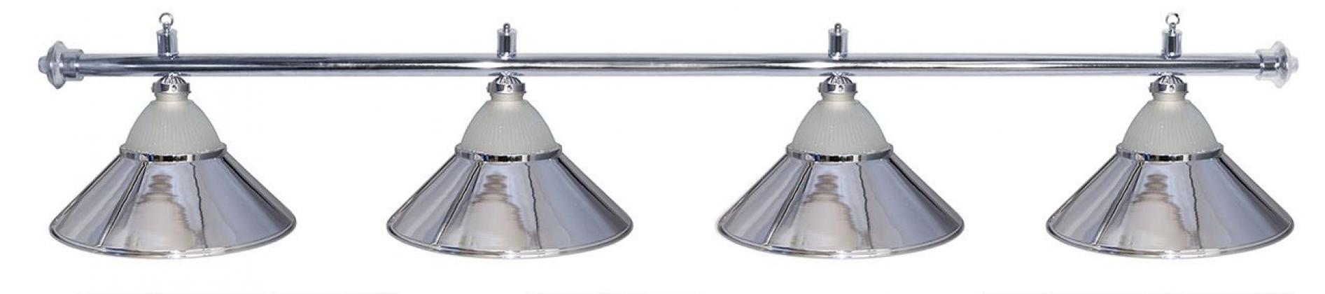 Классический дизайн лампы позволяет ей вписываться абсолютно в любой интерьер, а вставки из стекла рассеивают свет над бильярдным столом, создавая особую атмосферу. Комплектуется цепочками и чашками для крепления к потолку. Предназначена для равномерного освещения игрового поля 8-9 футовых столов.