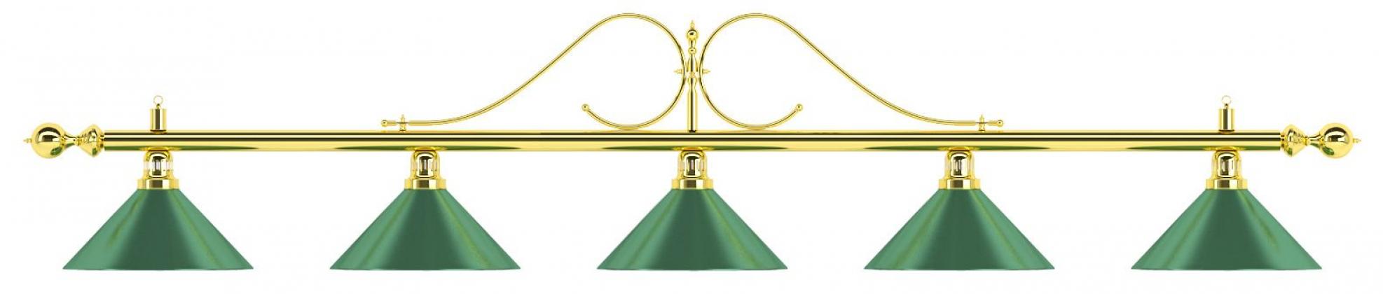Лампа на пять плафонов «Classic» (витая золотистая штанга, зеленый плафон D35см)