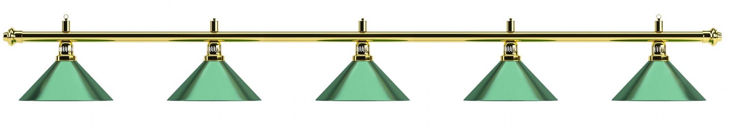 Лампа на пять плафонов «Evergreen» (золотистая штанга, зеленый плафон D35см)