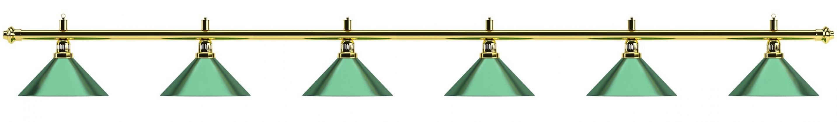 Лампа на шесть плафонов "Evergreen" (золотистая штанга, зеленый плафон D35см)