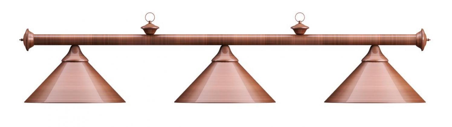 Изящная лампа классического дизайна органично впишется в любой интерьер. Устойчивые к механическим повреждениям металлические плафоны на металлической штанге обеспечивают не только качественное освещение игрового поля, но и создадут уютную атмосферу в бильярдном клубе или кабинете. Комплектуется цепочками и чашками для крепления к потолку. Предназначена для равномерного освещения игрового поля 6 - 8 футовых столов.